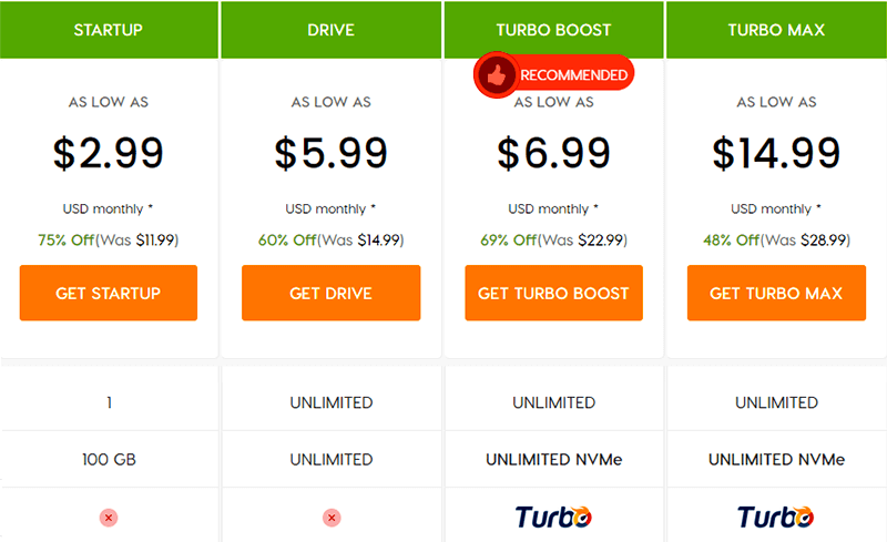 Choosing or upgrading to the Turbo Boost Plan priced at ₦71,300 annually gets you unlimited Non-Volatile Memory Express (NVMe) storage, daily website backup, proactive malware scanning, and the capability to accommodate an unlimited number of websites.