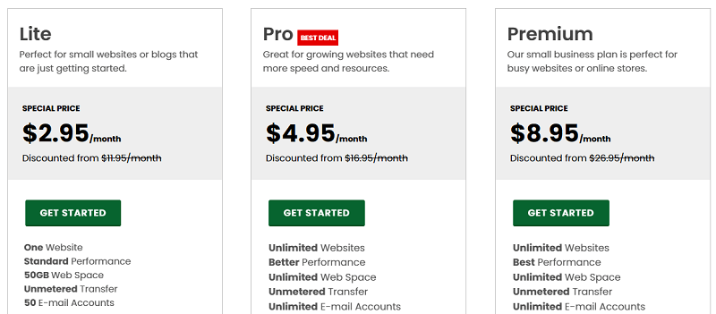 Greengeeks Shared Hosting Lite plan goes for $2.95 per month, with a total of ₦30,100 for the first year. This Lite plan allows you to connect just one website, 50GB SSD storage capacity, one free domain for the first year, unlimited database, and real-time scanning and security measures, to ensure uninterrupted performance and 99.9% uptime SLA.